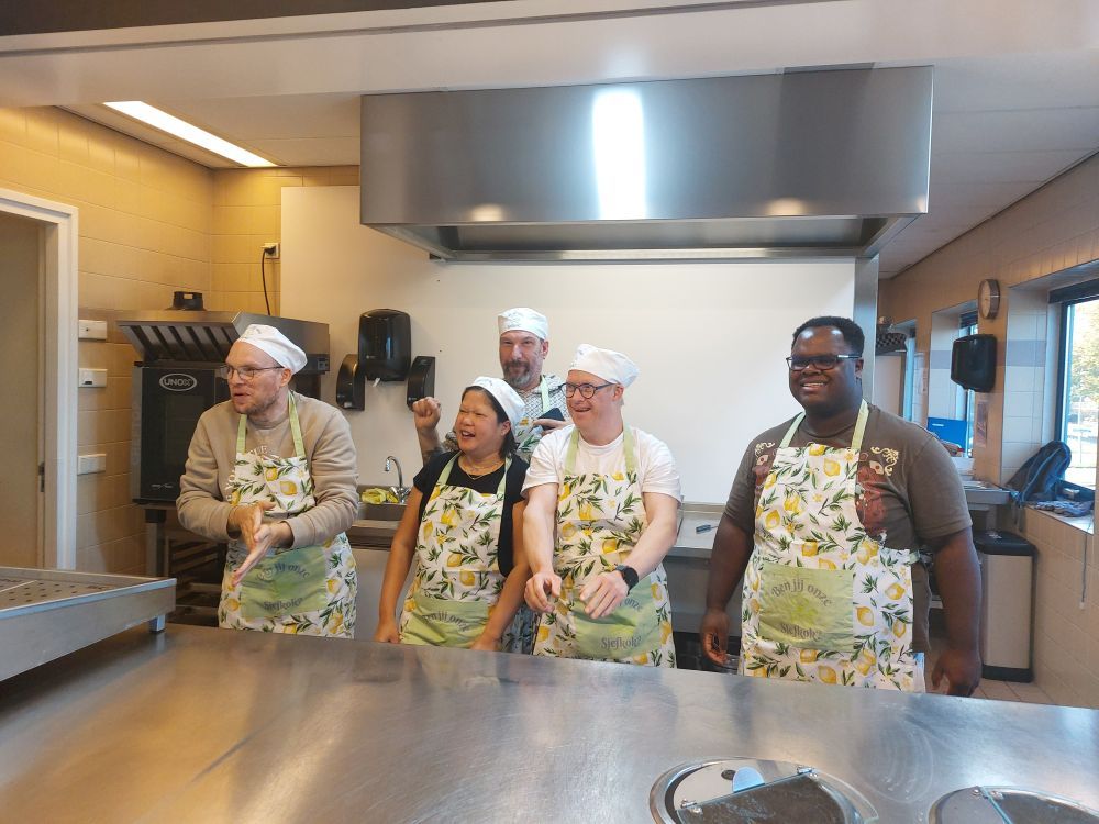 Vandaag vond de finale plaats van de kookwedstrijd ‘Ben jij onze Sjefkok?’. Vijf enthousiaste koks – Bert, Linda, Sander, Elviëno en Stefano – lieten hun kookkunsten zien door een gezonde snack te bereiden en te presenteren aan de jury, bestaande uit Mike (cliënt Spotlight), Christel Welling (expertisemanager) en Annemarieke (diëtist).