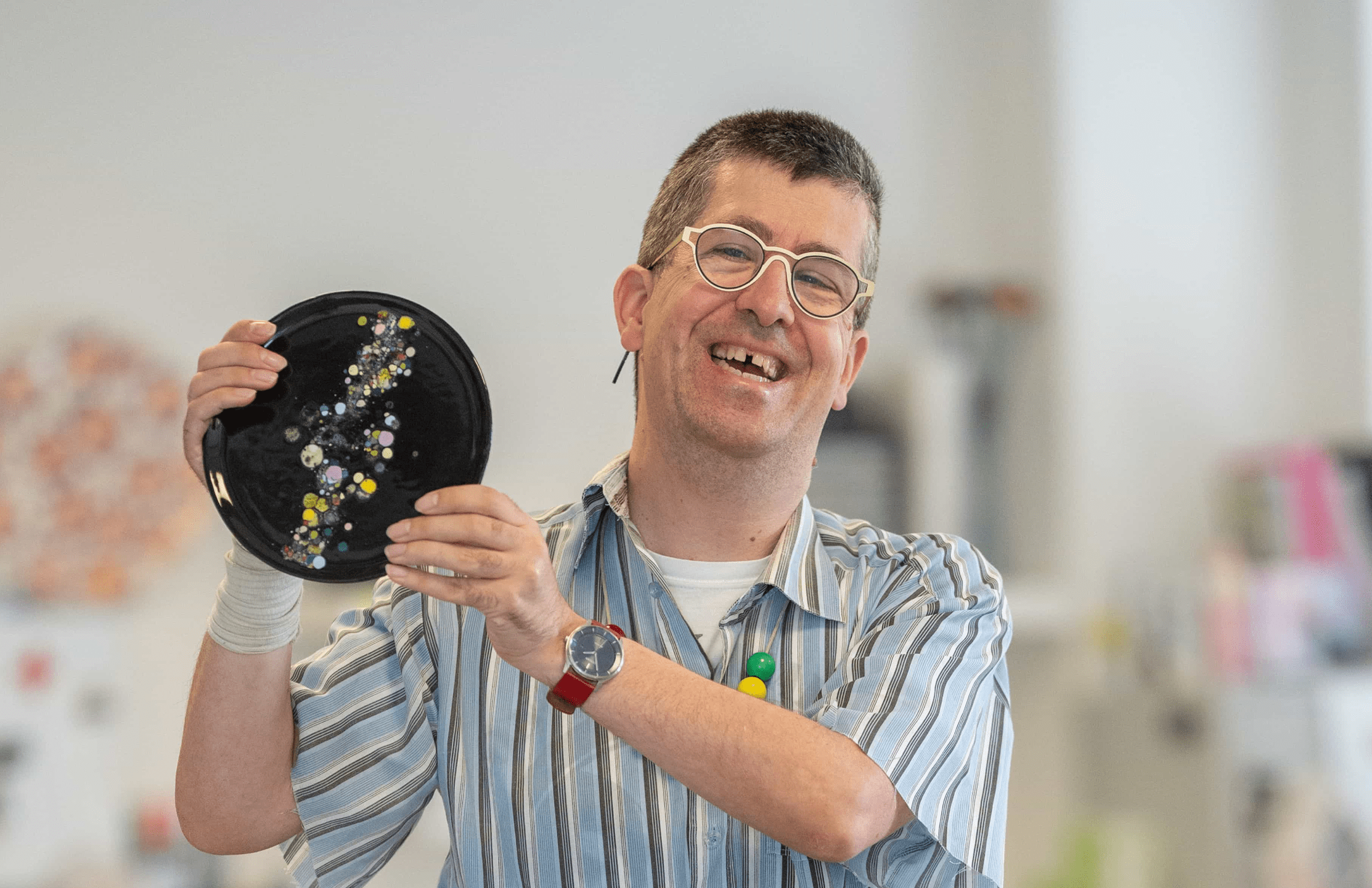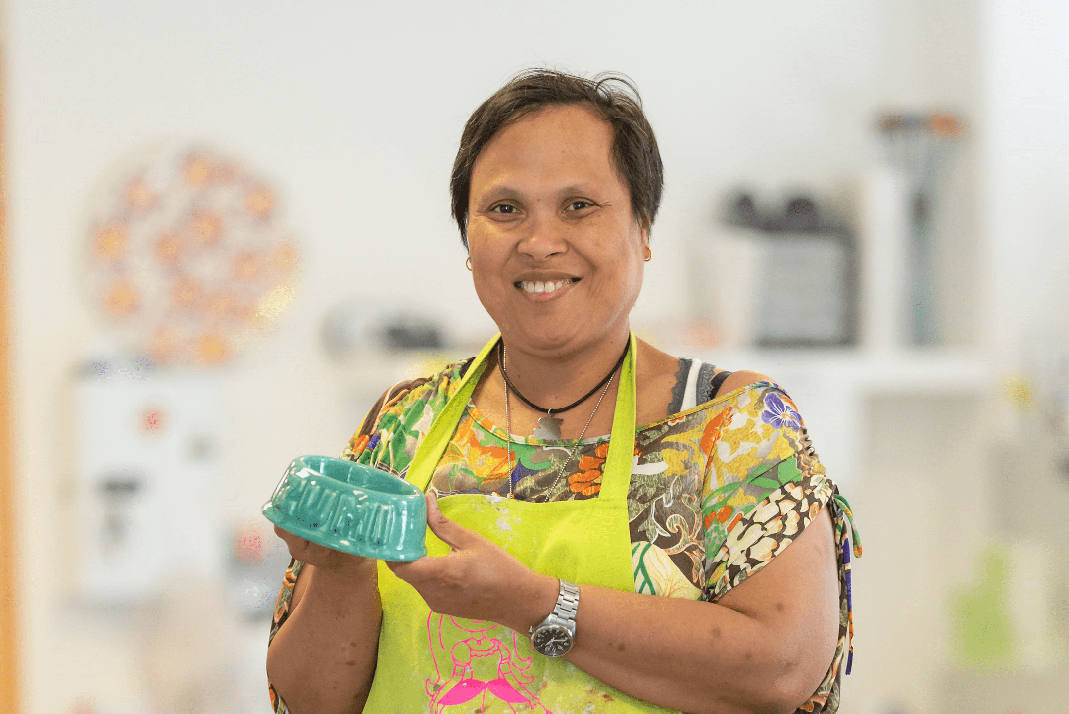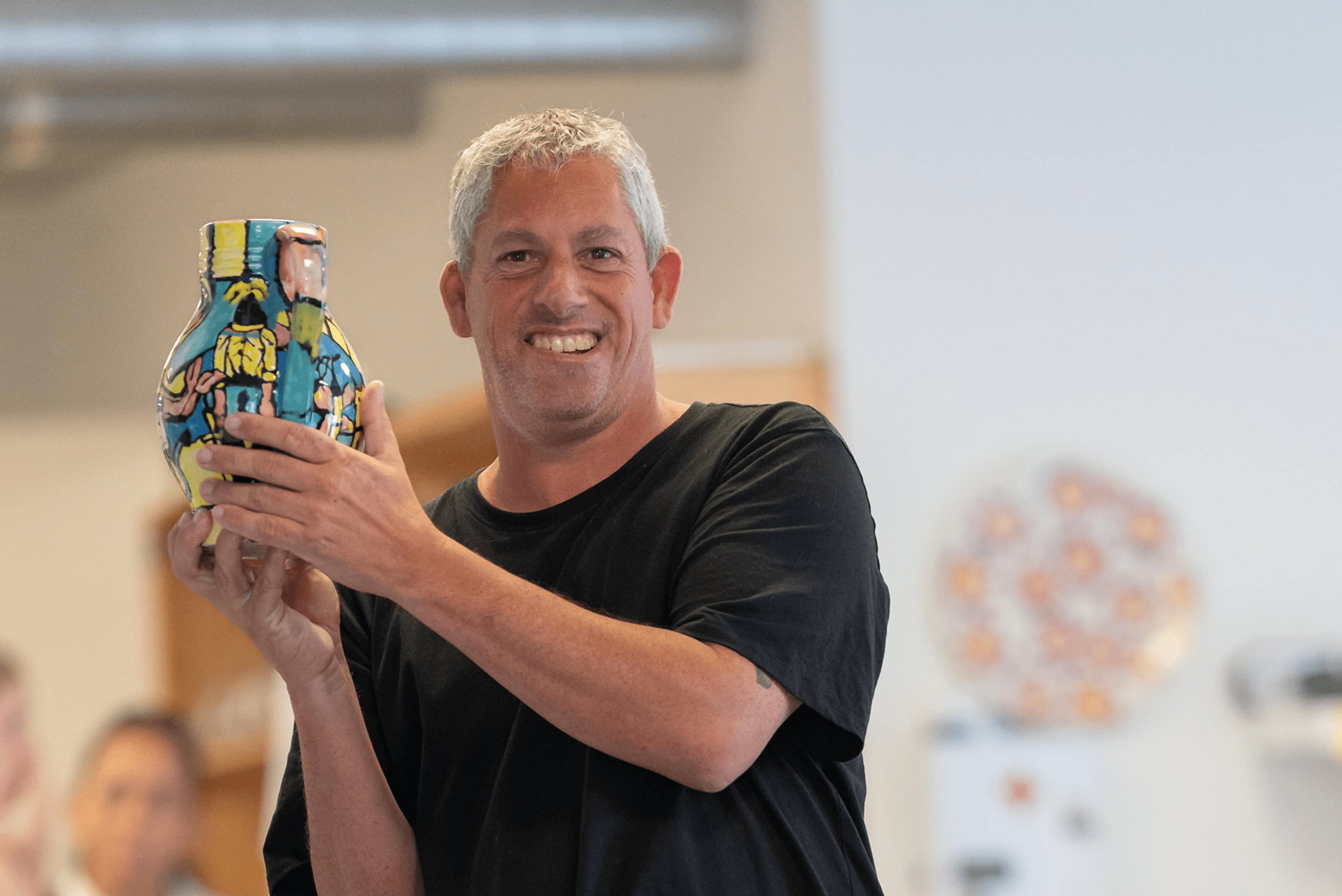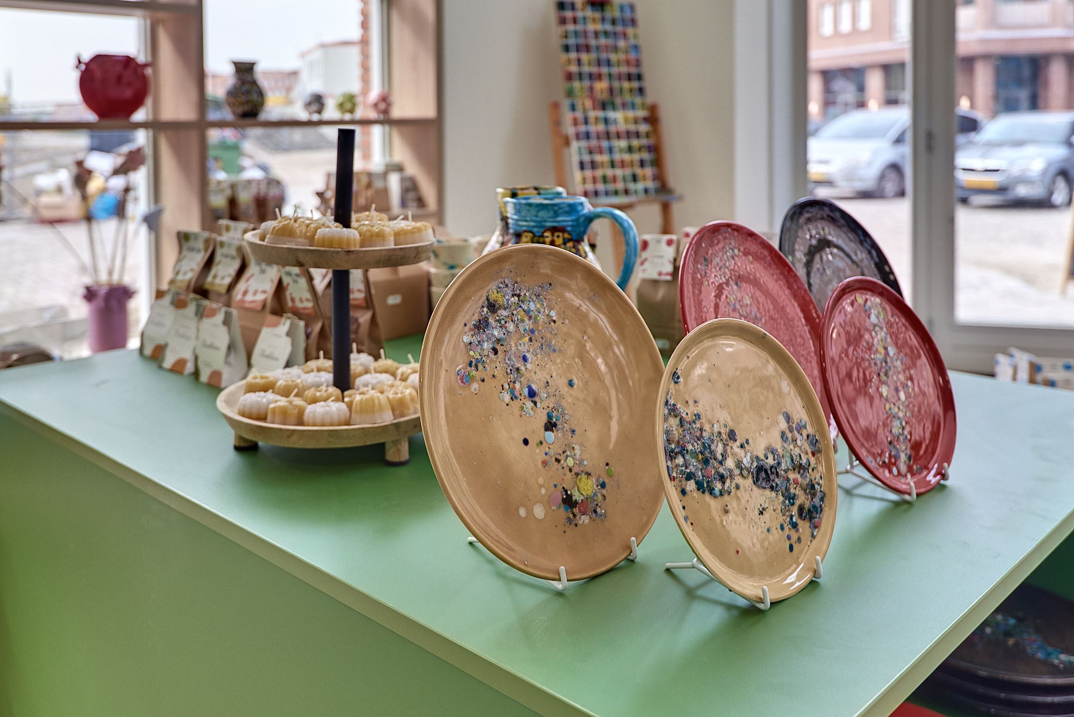 Vanuit de winkel kun je de werkplaats van Triambacht zien. Daar worden de keramieken producten gemaakt. Zo zie je meteen waar een deel van de spullen uit de winkel vandaan komt.
