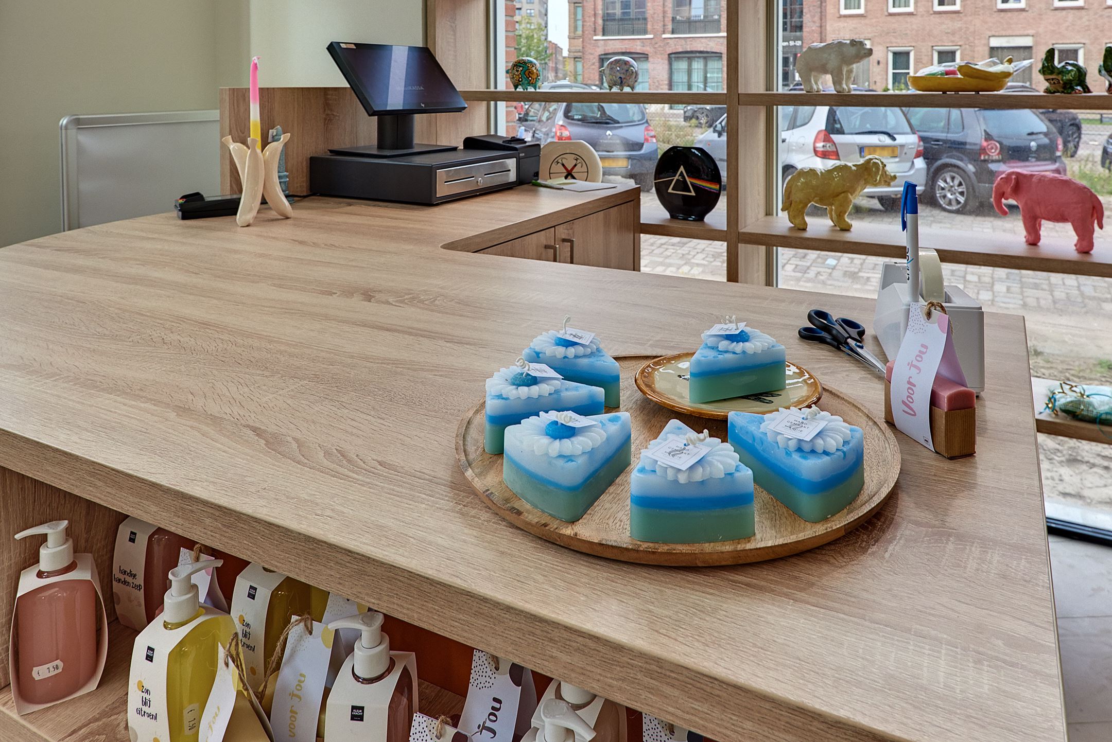 In de winkel verkopen we producten die gemaakt worden door cliënten van Triade Vitree. Dat zijn bijvoorbeeld keramieken mokken en schalen, thee, kaarsen, zeep en producten van hout.