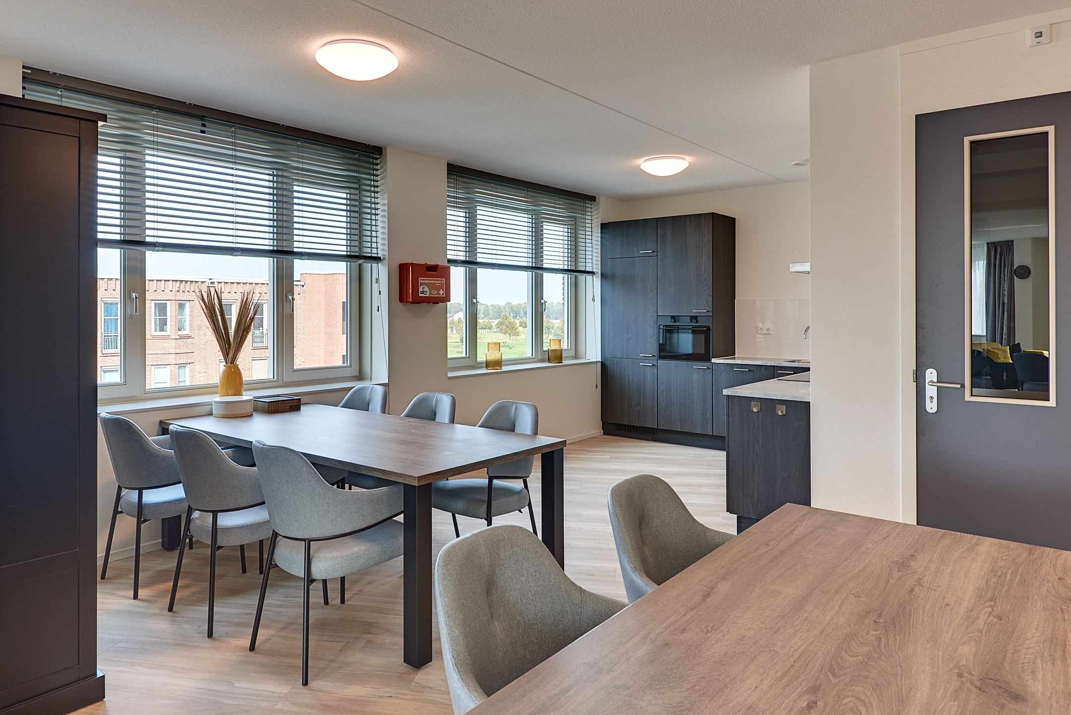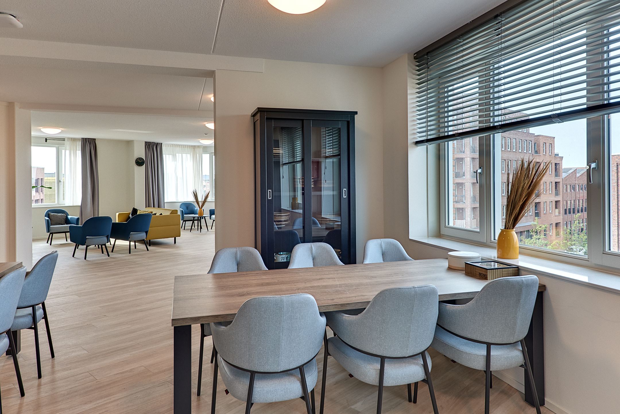 De appartementen liggen aan een galerij. Elke etage heeft een gezamenlijke ruimte. Samen met de andere bewoners kun je elkaar daar ontmoeten, meedoen aan activiteiten of soms samen eten.
